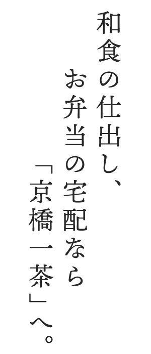 岩出バイパスからすぐの場所に位置する京橋一茶 岩出店。近隣の住宅街や会社への配達を主に行っており、仕出しメニューも懐石や法事、慶事に合わせたメニューを取り扱っております。 また、少年野球や学校行事などからも多く利用があり、低価格なお弁当もご用意しております。